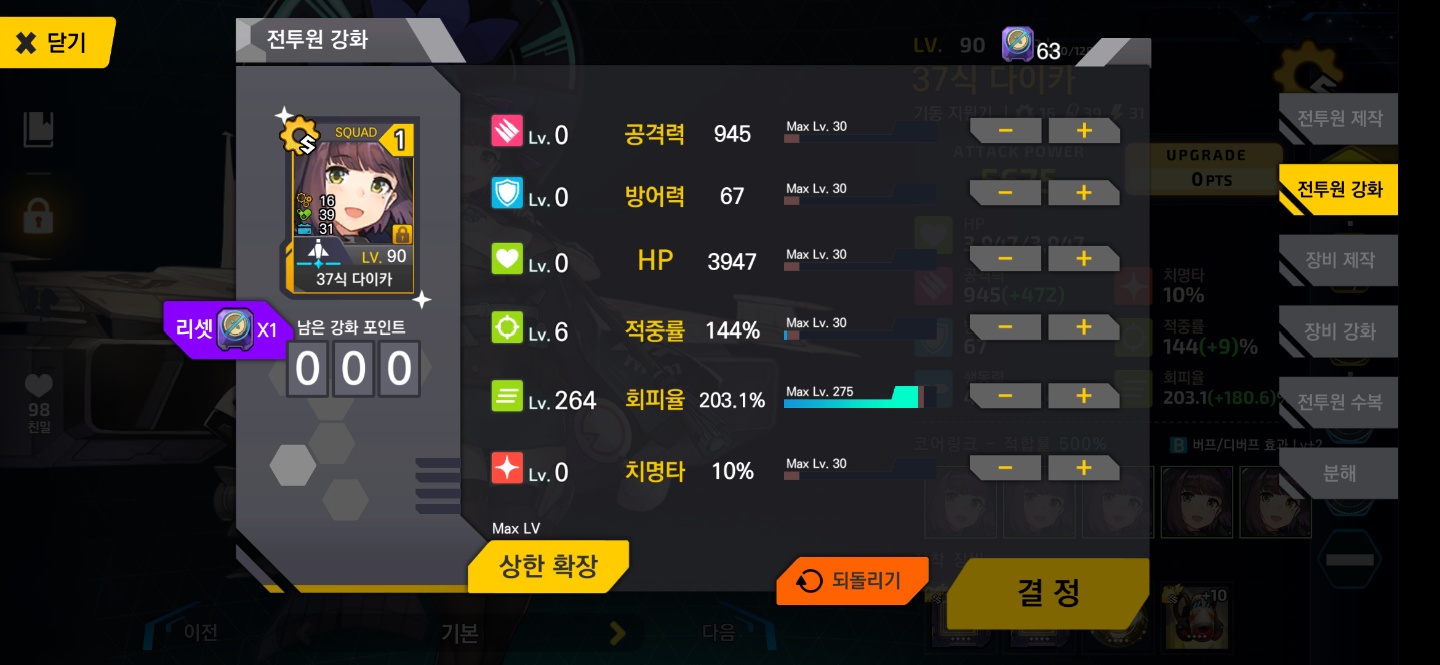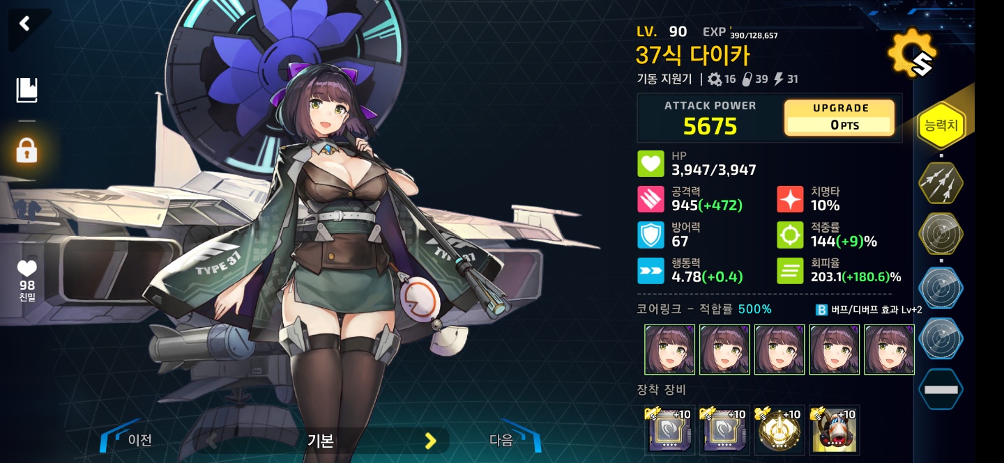 나머지 부족한 회피는 승급 다이카의 패시브로 채우면 되거든요.
