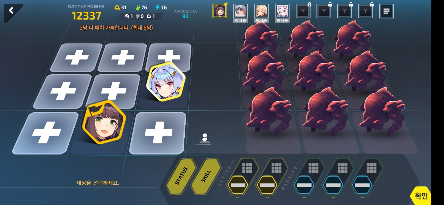 그래서 앞열로 이동시켜줬더니 패시브 효과로(적진과 가까울 수록 회피 상승) 전복이 발생하지 않았습니다.