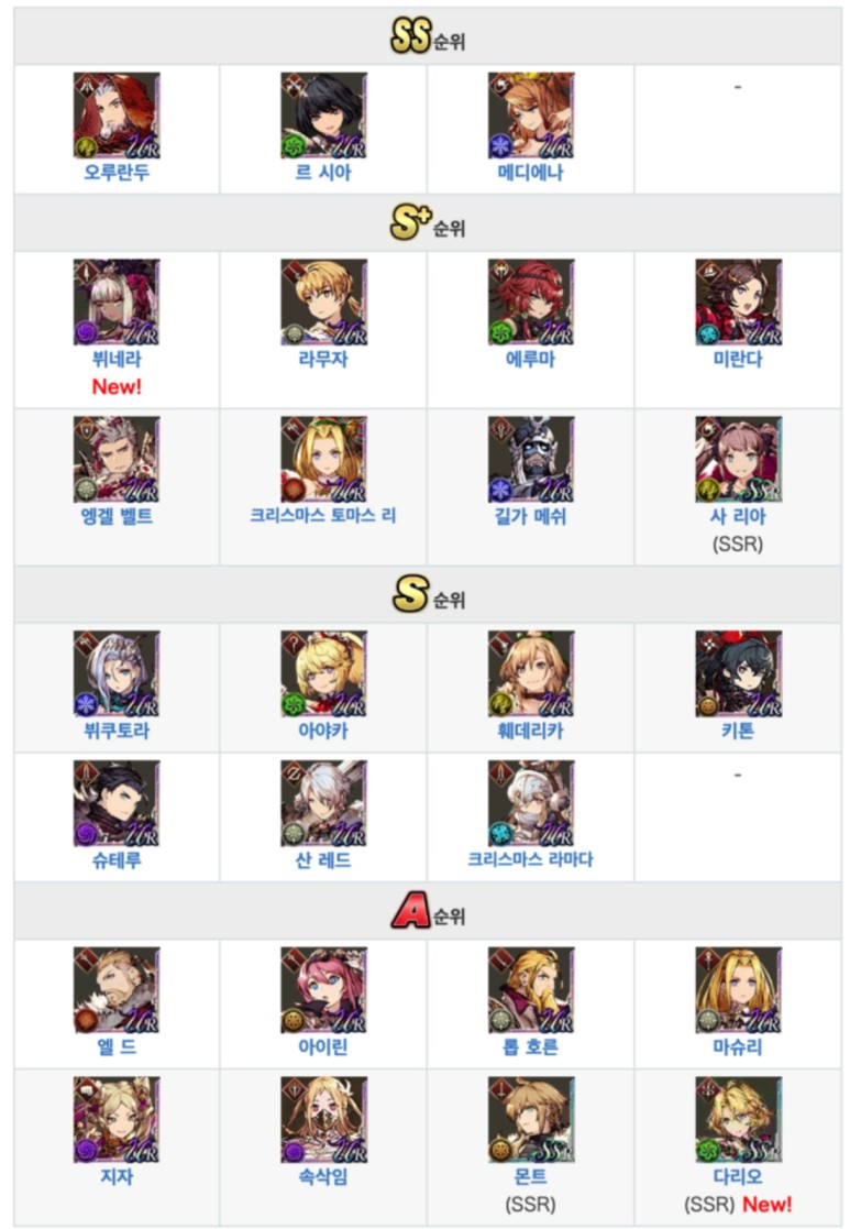 그 외에도 '페데리카' '루시아' '길가메쉬' 같이 좋은 캐릭터들이 있긴 하지만, 그래도 '메디아나' '엥겔벨트'를 노리는 걸 추천드립니다.