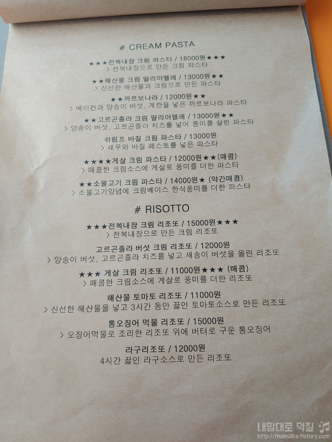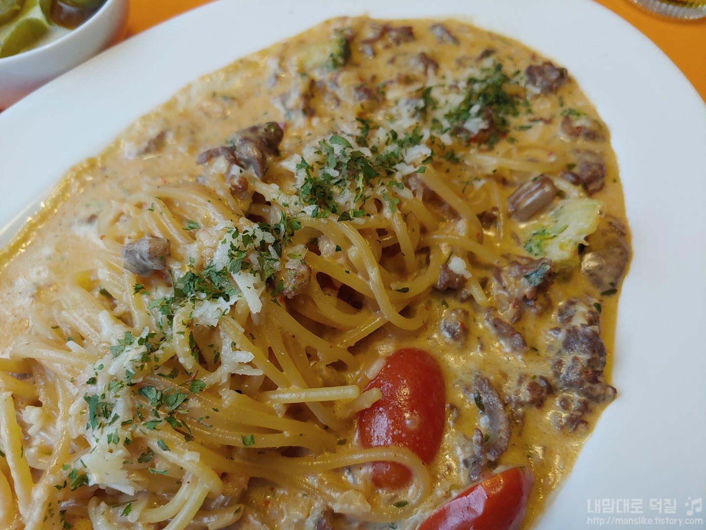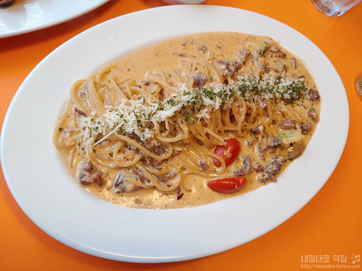 맛 자체는 괜찮은 수준이었으나 소불고기 크림 파스타 특유의 매운맛이 좀 거슬리더라고요.