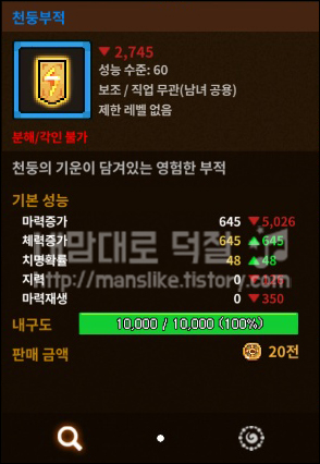 하지만 천둥부적은 획득하는 방법이 다소 까다로워 수급 경로를 모르는 분들이 좀 많습니다.