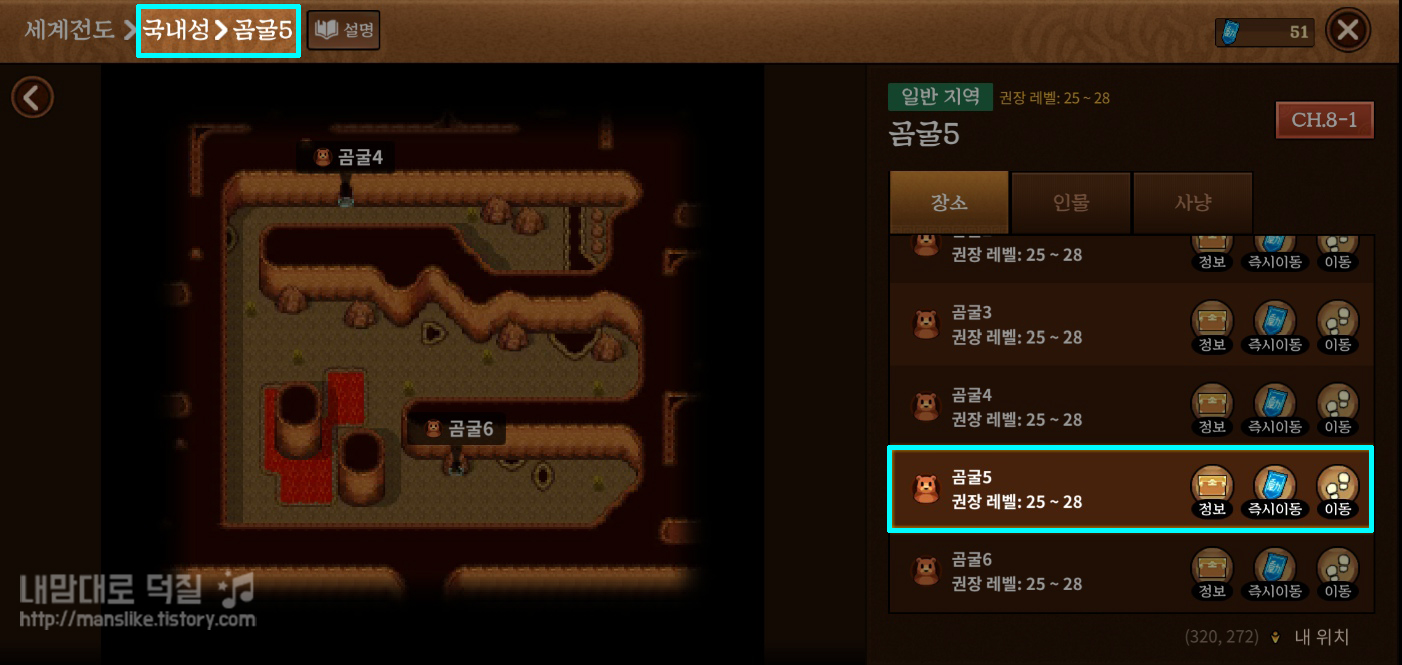 2. 국내성>곰굴5>소생천으로 이동