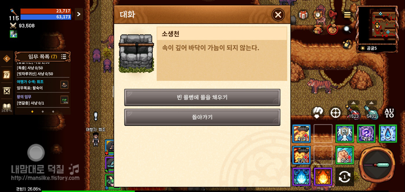 빈 물병에 물을 채우기를 선택해주시면 됩니다.