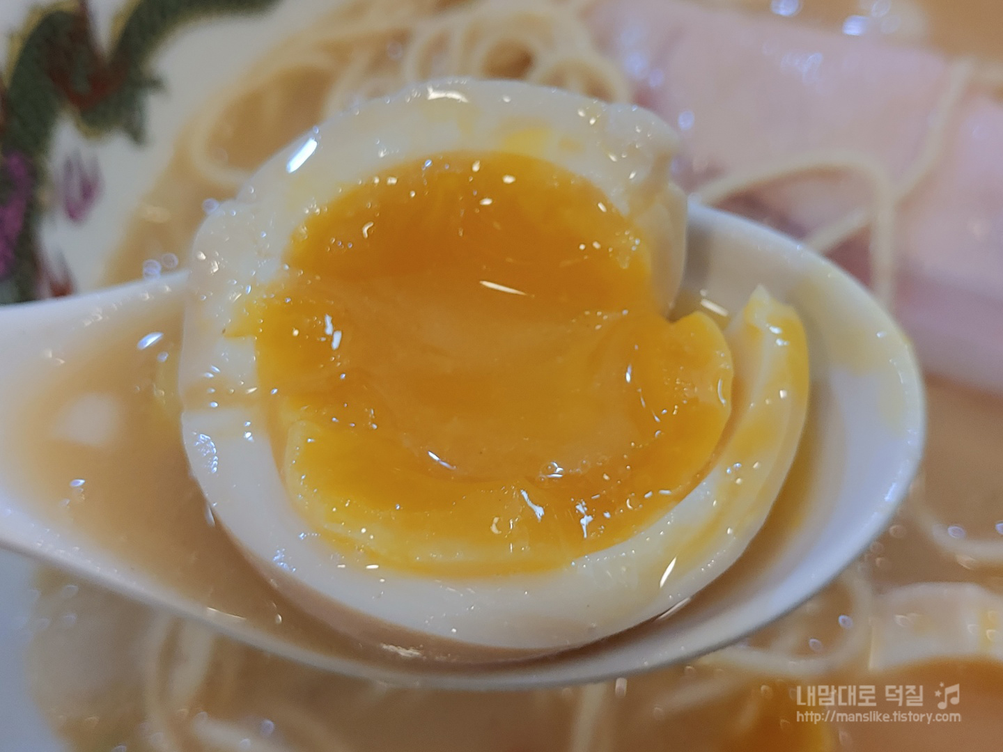 삶은 달걀에 라멘 국물이 깊게 스며들면 이런 맛을 만들어낼 수 있는 거였군요.