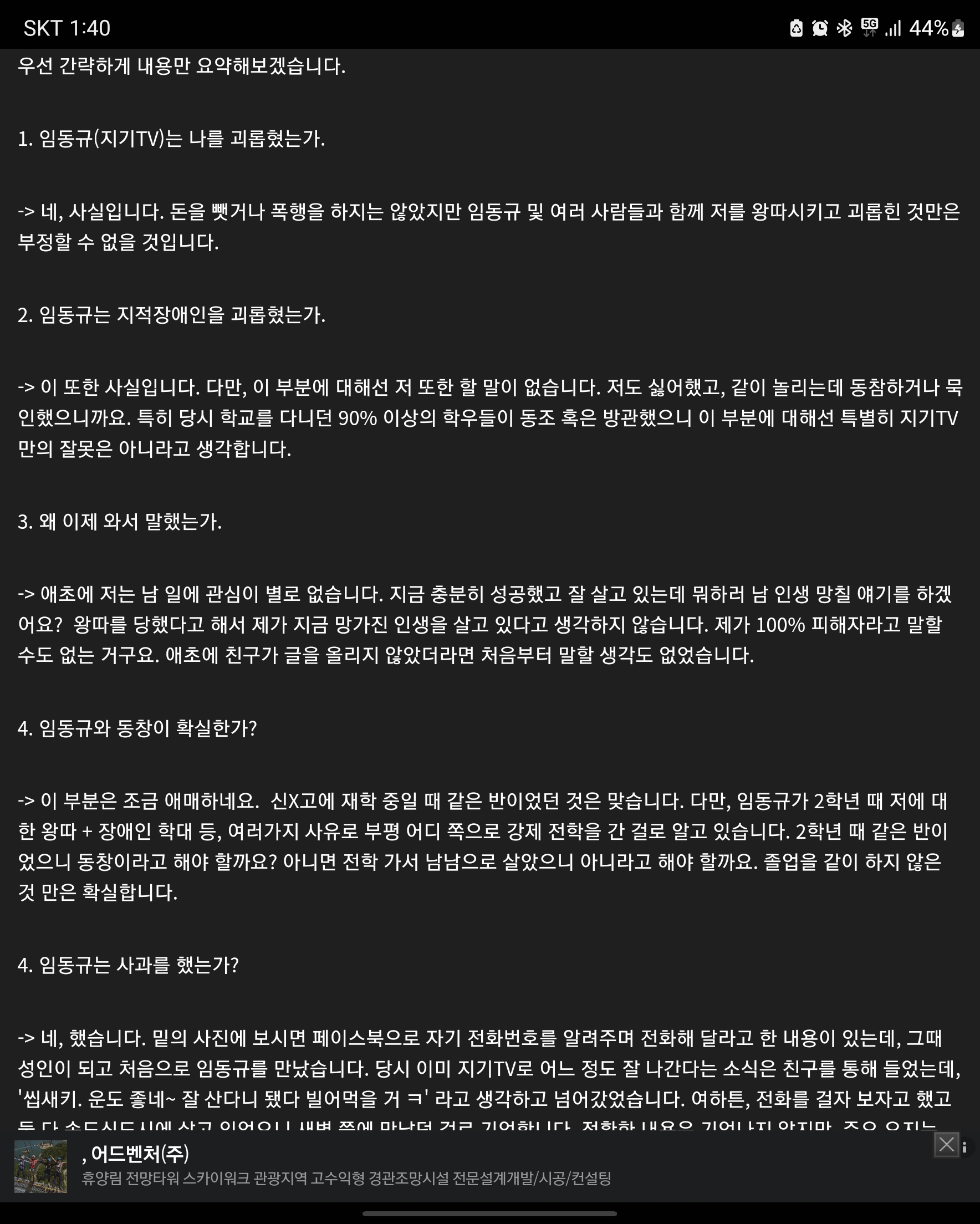 1. 학창 시절 지기tv에게 괴롭힘을 당한 건 맞다.
