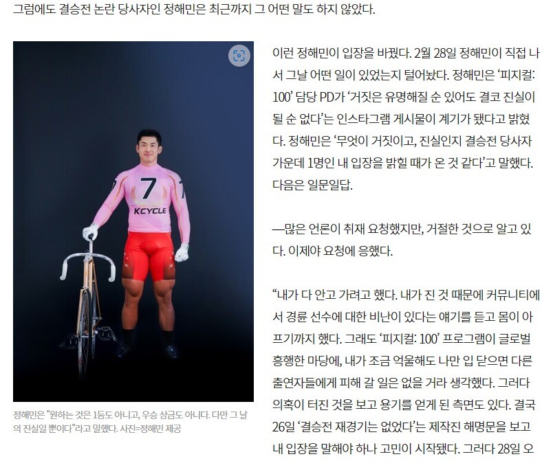 ▶ 피지컬100 준우승 정해민 인터뷰 기사 원문 링크
